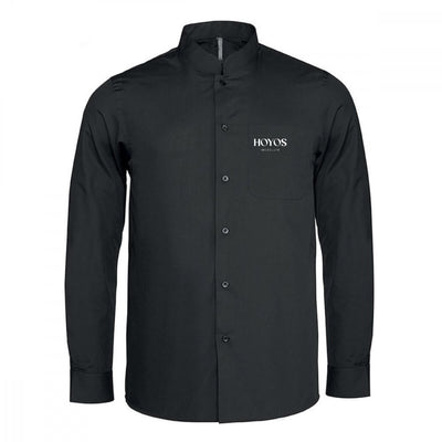 "Long-sleeve Hoyos Mandarin collar shirt."